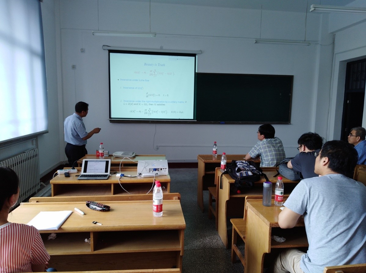 应全讯800cc大白菜数学系和数学研究院的邀请,首尔国立大学数学科学系Ha Seung-Yeal教授于2017年6月21日、22日在格物楼522报告厅做了题为“Unified approach for collective dynamics”及“Flocking modeling of thermodynamic Cucker-Smale particles”的系列报告,数学系相关专业的十余位师生参加学术报告并展开了讨论。